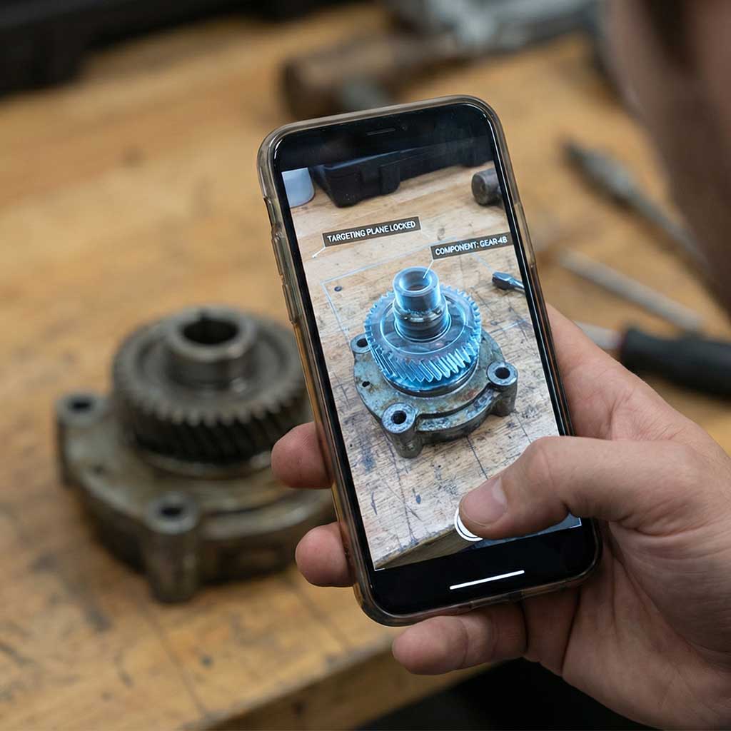 Bring complex industrial parts and technical processes into an interactive augmented reality experience. With Industrial AR Scenario, users can scan a product, machine, catalog, or marker and instantly visualize industrial components in 3D directly in their real environment — all through the browser, with no app installation required.